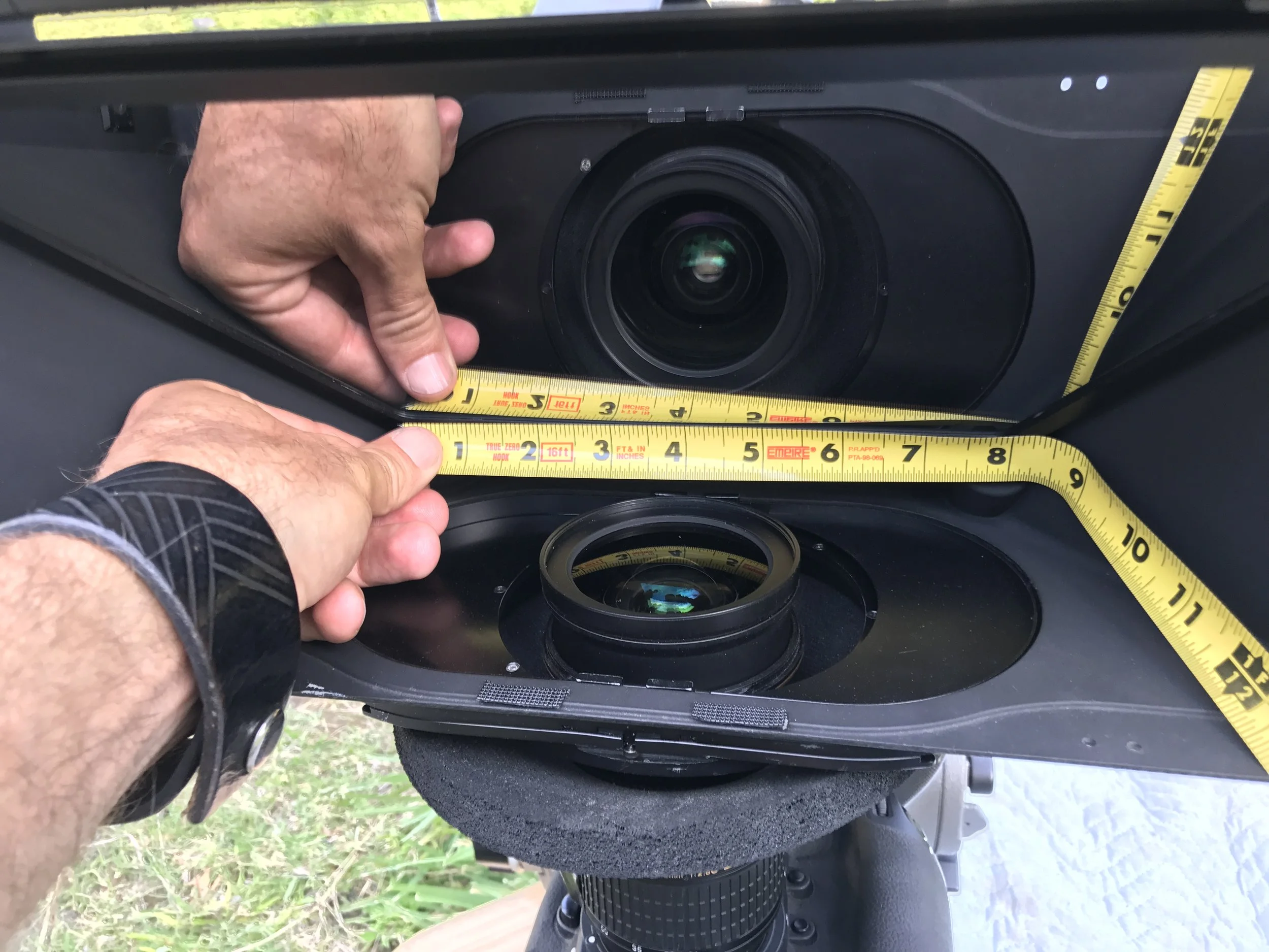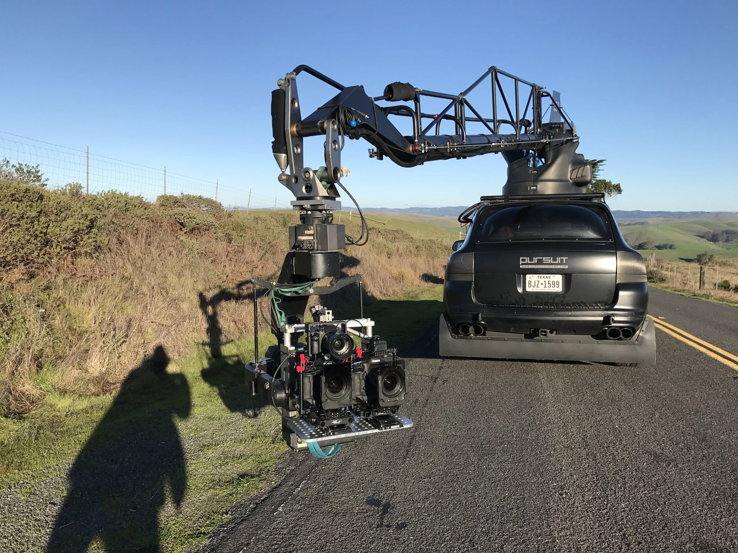 This 3 camera set up allows us to have 1. Viewing camera 2. Car capture 3. Wide background plate